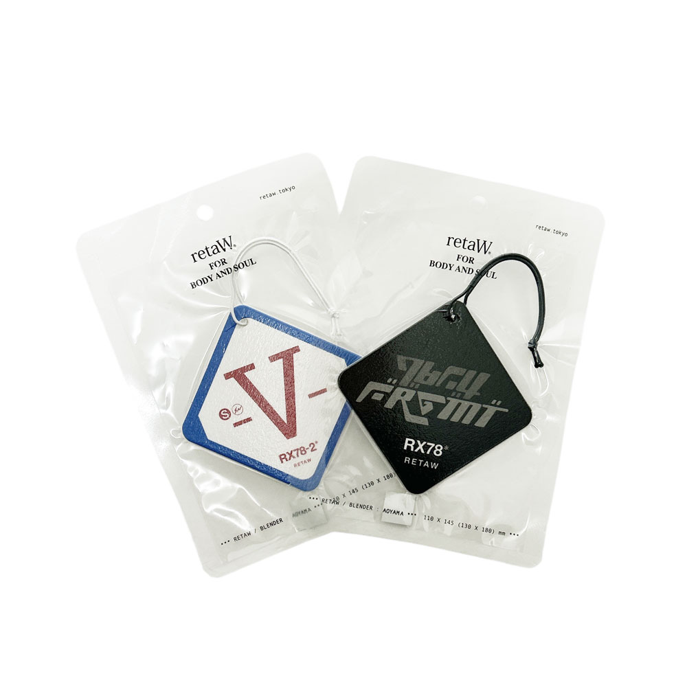 世界的にも名の知れた日本アニメの偉大な作品である機動戦士ガンダムシリーズの45周年を記念し、コンセプトストア「V.A.」で「GUNDAM45FRGMT」と名を冠したポップアップストア限定アイテムが入荷!こちらは同じく藤原ヒロシ氏がプロデュースするボディトリートメントブランド「retaW(リトゥ)」とのスペシャルデザインのフレグランスカータグです!カーアクセサリーとしてお好みの場所に吊り下げて楽しめます♪プレゼントやギフトにも最適☆