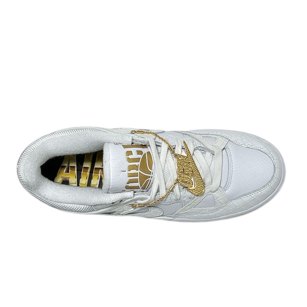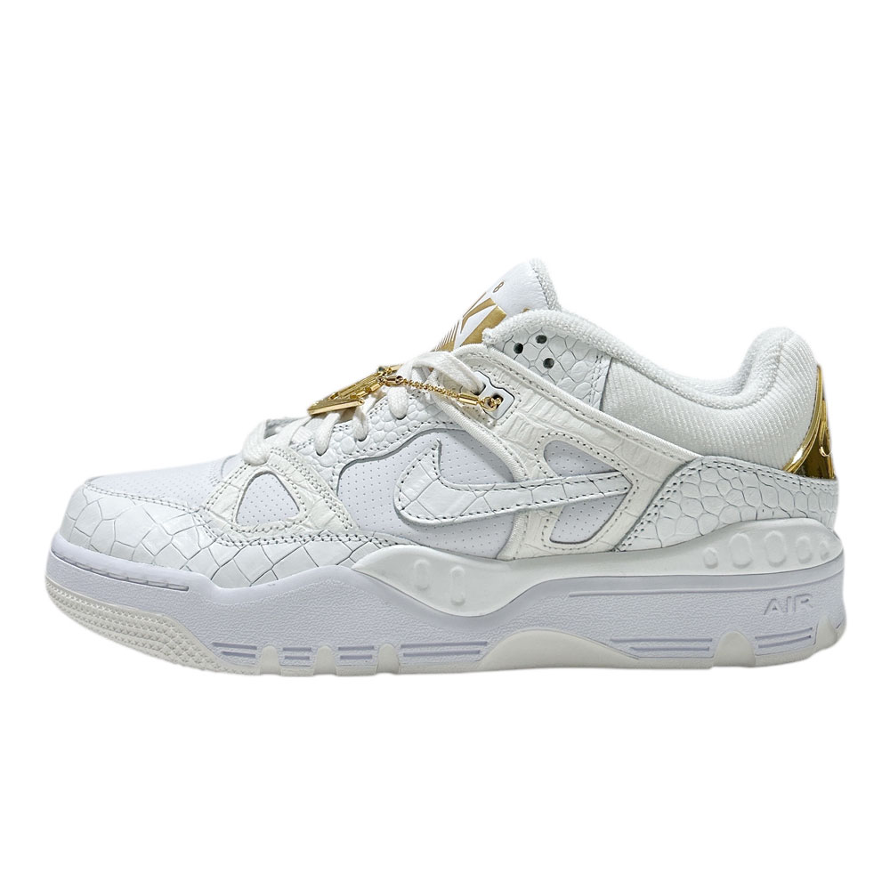 世界中を一世風靡した裏原ブランドの雄「A BATHING APE」の創業者であり、現在は「HUMAN MADE」のクリエイティブディレクターを務めるストリートシーンの重鎮「NIGO」氏と、ストリートとスポーツシーンの中心的存在であるNIKEとのスペシャルコラボレーションの最新作が登場!両者のコラボではお馴染みとなったAIR FORCE 3をベースに、クロコダイルの型押しレザーにゴールドのチェーンがあしらわれたラグジュアリーな雰囲気の一足に仕上がっております!ヒールロゴは左右非対称デザインで入り、スペシャルデザインのボックスやワッペンとピンズも付属する豪華仕様!限られた店舗でしか入手できない超希少激レアアイテムです!お早めにどうぞ!