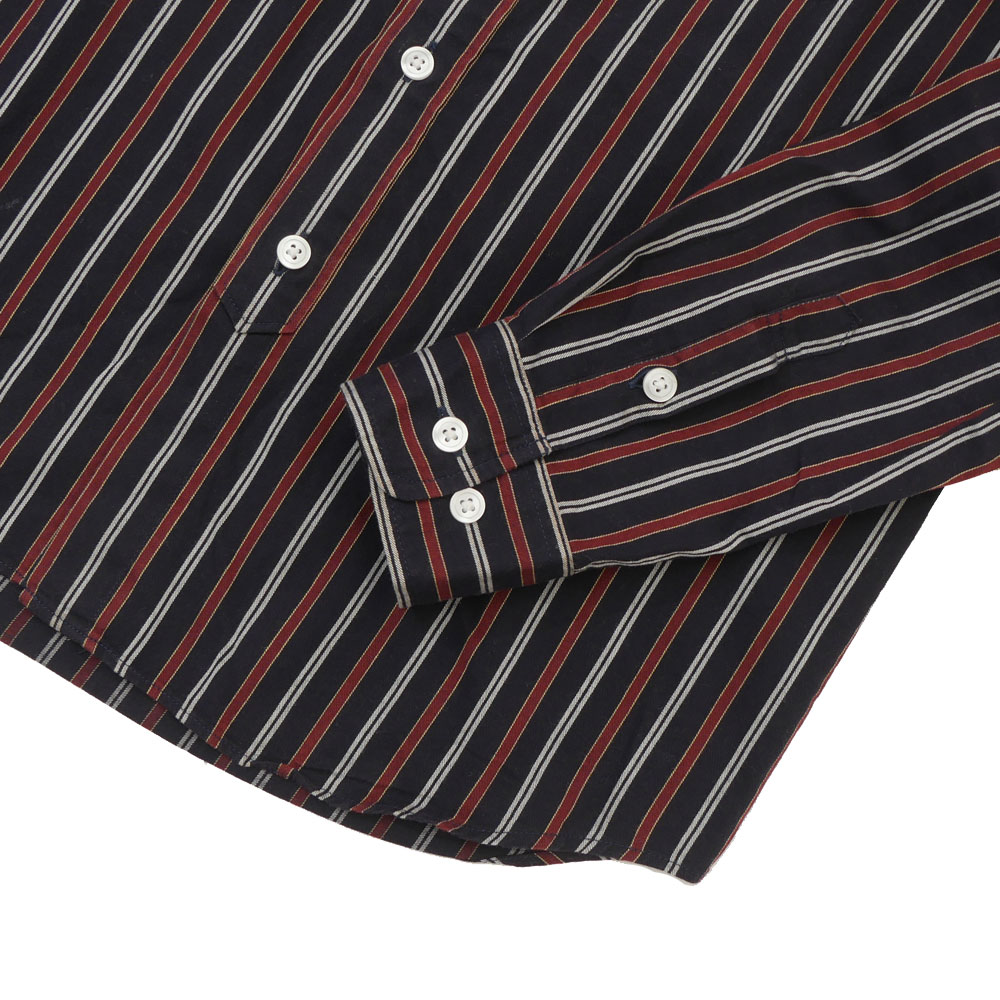 レジメンタル風のストライプ柄が印象的なロングスリーブシャツです。