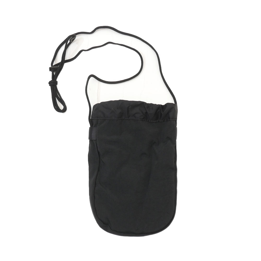 軽量で丈夫なナイロン素材にドローストリングとストラップが付いたショルダーポーチです。外側にポケットと内側に仕切りが付くので小物の収納に最適です◎