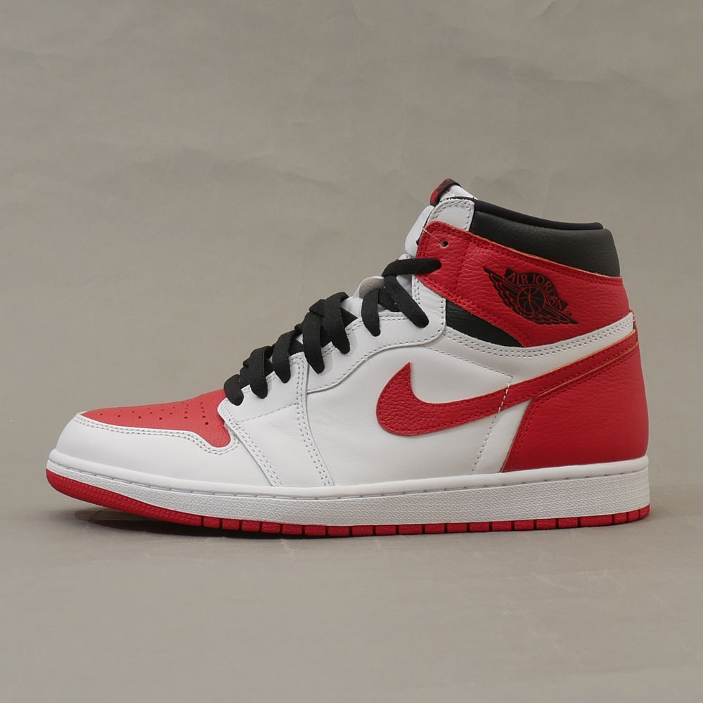ホワイトレザーにユニバーシティレッドとブラックを組み合わせたエアジョーダンらしいカラーリングのモデル、通称HERITAGEです。1985年当時のフォルムや仕様を忠実に再現したOG仕様になります。箱付き