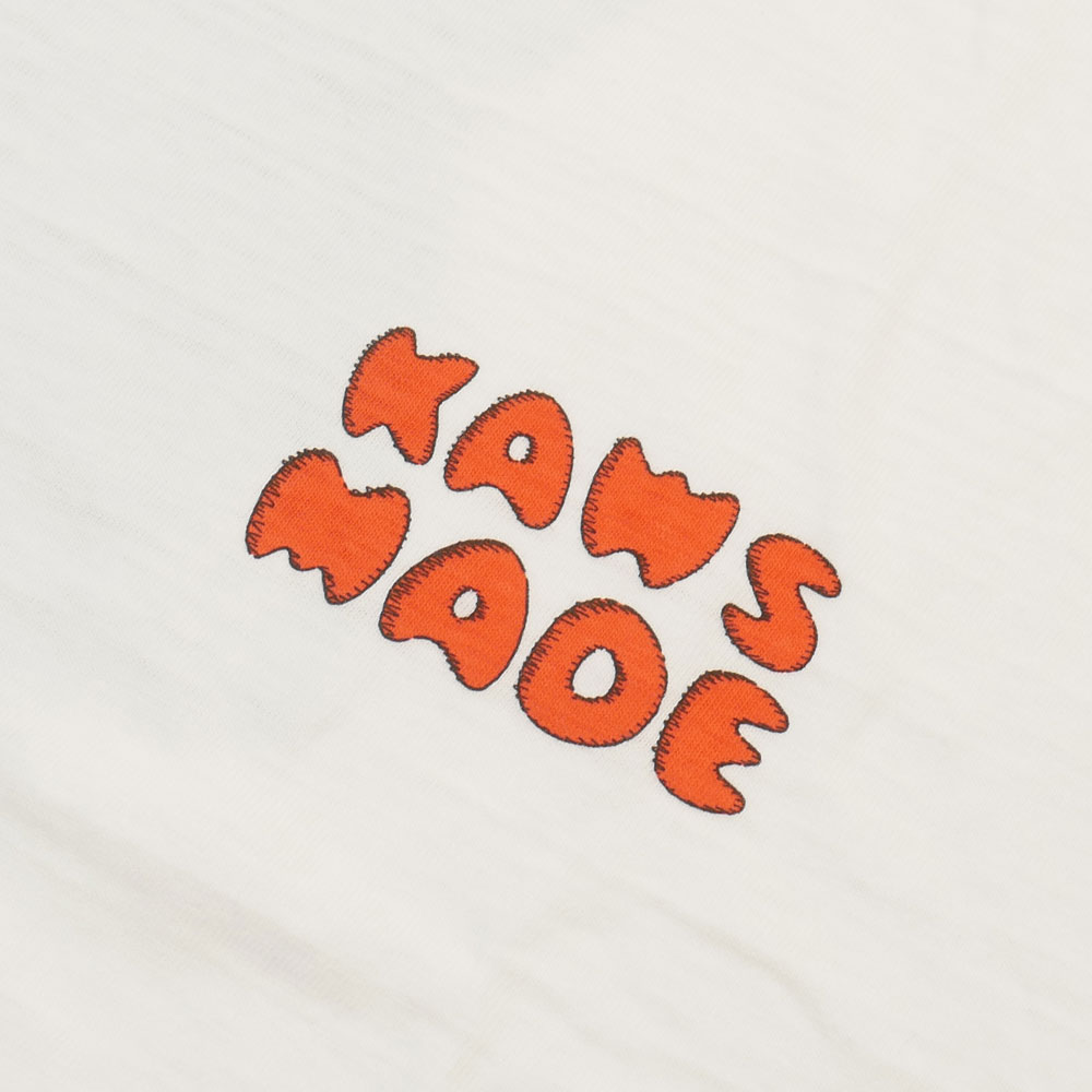 NIGO氏が手掛けるブランド"HUMAN MADE(ヒューマンメイド)"と、NYをブルックリンを拠点に活動するポップカルチャー界の旗手であり、両目が×印になったキャラクターで知られるアーティスト"KAWS(カウズ)"のタッグによるコラボレーション最新作が登場!こちらはお馴染みの厚手で柔らかいスラブボディを用いて制作されたグラフィックTシャツです!双方のブランド名を合わせた「KAWS MADE」の文字とともに、KAWSが特別に描き下ろしたアイコニックなグラフィックが印象的!