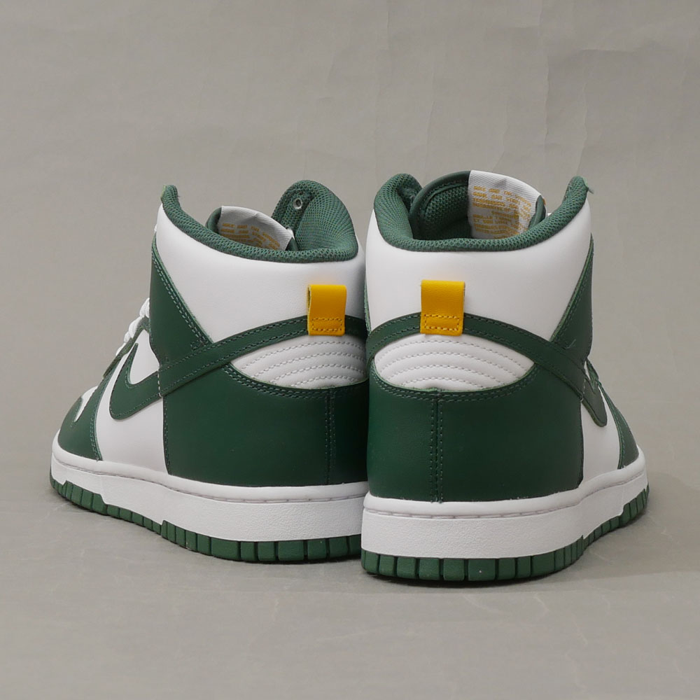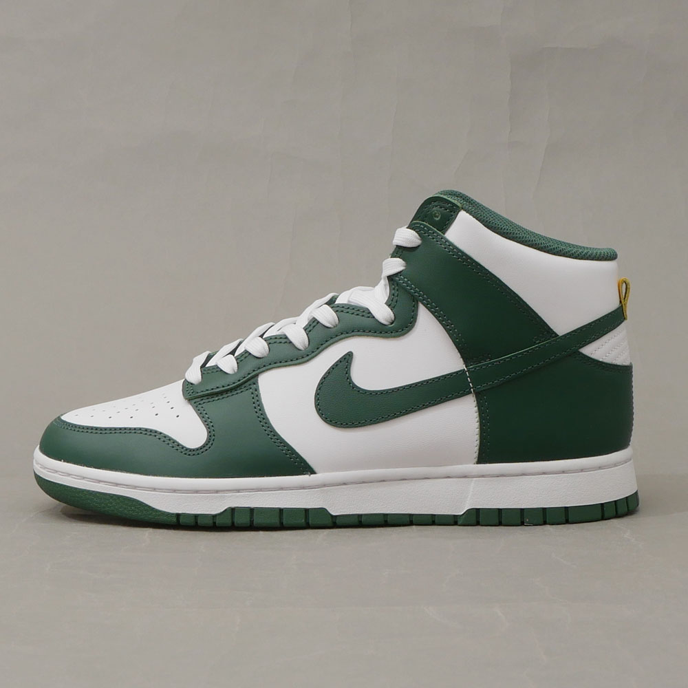爽やかなグリーンとホワイトでダンクのオーソドックスなカラーを構成したDUNK HI RETROです。シュータンのイエローもポイントになっています◎箱付き