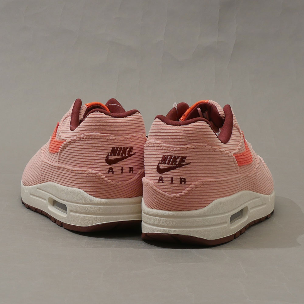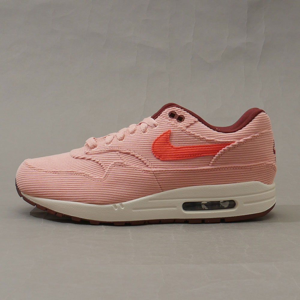 コーデュロイで仕上げたエアマックスシリーズの原点であるAIR MAX 1です。コーラルカラーのスウッシュとヒール部分のブラウンの刺繍が特徴の一足です◎箱付き