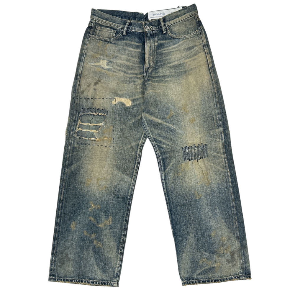 12ozデニム生地をベースにハードな加工が特徴のNEIGHBORHOODのサベージデニムパンツです。リベットやパッチなどの細かなパーツに加え、ゆったりとしたワイドスレートシルエットが特徴の一本です◎